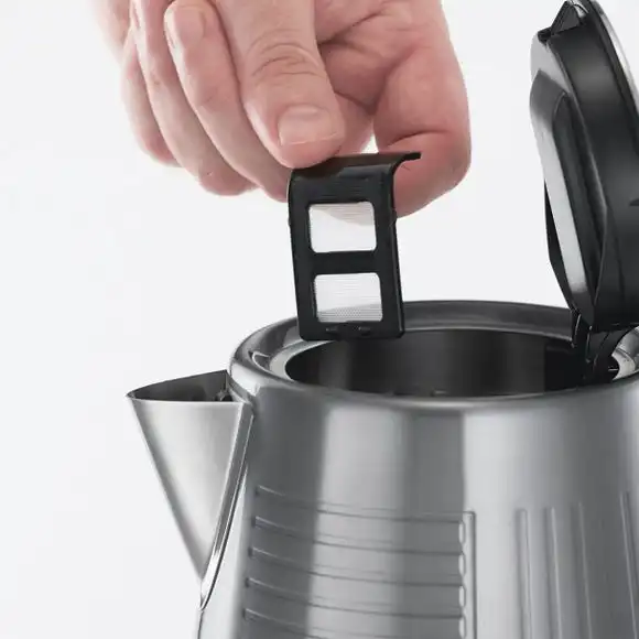 This beautiful Russel Hobbs Kettle has a modern colourway that will complement an array of kitchens. With a 1.7L capacity and rapid boil, this 3000W kettle has a removable and washable limescale filter and boil dry protection as it automatically switches off when the kettle is empty. Other features include: a stainless steel interior and exterior, a push-button operated lid, a 360 degree base and a 0.91m cable from the base to the plug.