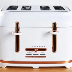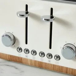 Perfect for busy families, this toaster has a four slice capacity and has been crafted with a brushed stainless steel finish suitable to compliment all types of kitchen decor. Featuring variable width bread slots this toaster can toast many different types of bread suitable to cater to all family members needs while also featuring a high lift facility so that you can see the status of the bread and can lift out safely. This toaster boasts defrost functions for frozen bread, reheat functions for bread already toasted and a mid cycle cancel function making this toaster the appliance to have for a busy morning. The slide out crumb tray assists with quick and easy cleaning after every use and helps to prolong the life of this toaster. Supplied with a two year guarantee.